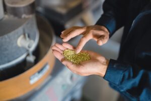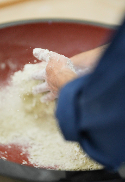 可能な限り産地へ足を運び、畑や実を自分たちの目で確認します。仕入れた原料は必ず製粉し、実際に打って、「粘り・打ちやすさ・味の濃さ・色」などを確認。納得できたものだけを取り扱っています。